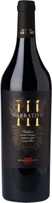 Zbierane w winnicach wokół Cerignoli. Gleby zawierają dużo wapienia i gliny. Zbiory rozpoczynają się od Primitivo pod koniec sierpnia, Negroamaro w połowie września, a Nero di Troia w październiku. WINIFIKACJA Po odszypułkowaniu winogrona są miażdżone i macerowane przez 15-20 dni w stalowych kadziach w kontrolowanej temperaturze. Podczas tego procesu sok winogronowy jest stale pompowany nad unoszącym się miąższem winogron, co wydobywa dodatkowy aromat. Następnie wino jest tłoczone. Wino pozostaje w stalowych kadziach przez miesiąc, a następnie przelewane do małych dębowych beczek. W nich wino dojrzewa przez 12 miesięcy. Na koniec wino dojrzewa ponownie przez kolejne 6 miesięcy w stalowych kadziach i 6 miesięcy w butelce, zanim zostanie wprowadzone na rynek. Unikalną cechą dębowych beczek dla Narrativo jest to, że właściciel Angelo Paradiso osobiście wybiera je co roku we Francji od słynnego bednarza Seguina Moreau, zgodnie ze stylem Narrativo.