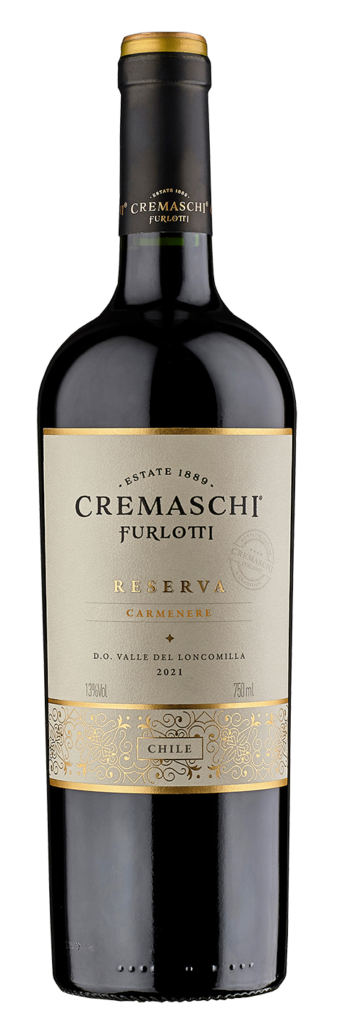 Cremachi Furlotti Reserva Carmenere to czerwone wytrawne wino z regionu doliny Loncomilla w Chile, które charakteryzuje głęboki czerwony odcień z fioletowymi refleksami, który uwidacznia bukiet jeżyn, śliwek oraz subtelną nutą zielonego pieprzu i przypraw. W smaku struktura jest średnio-pełna, z nutami dojrzałych wiśni, czarnej porzeczki i nutami kakao. Aksamitne taniny i dobrze zrównoważona kwasowość. Finisz jest trwały i długi